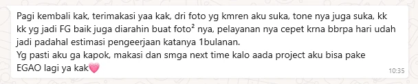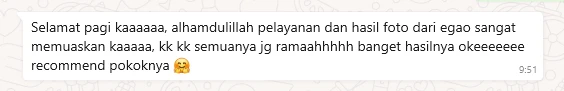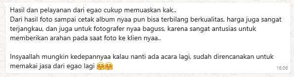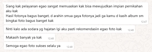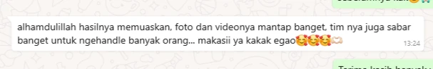 Kami senang mendengar testimoni dari klien kami yang telah mengalami pengalaman fotografi yang memukau.